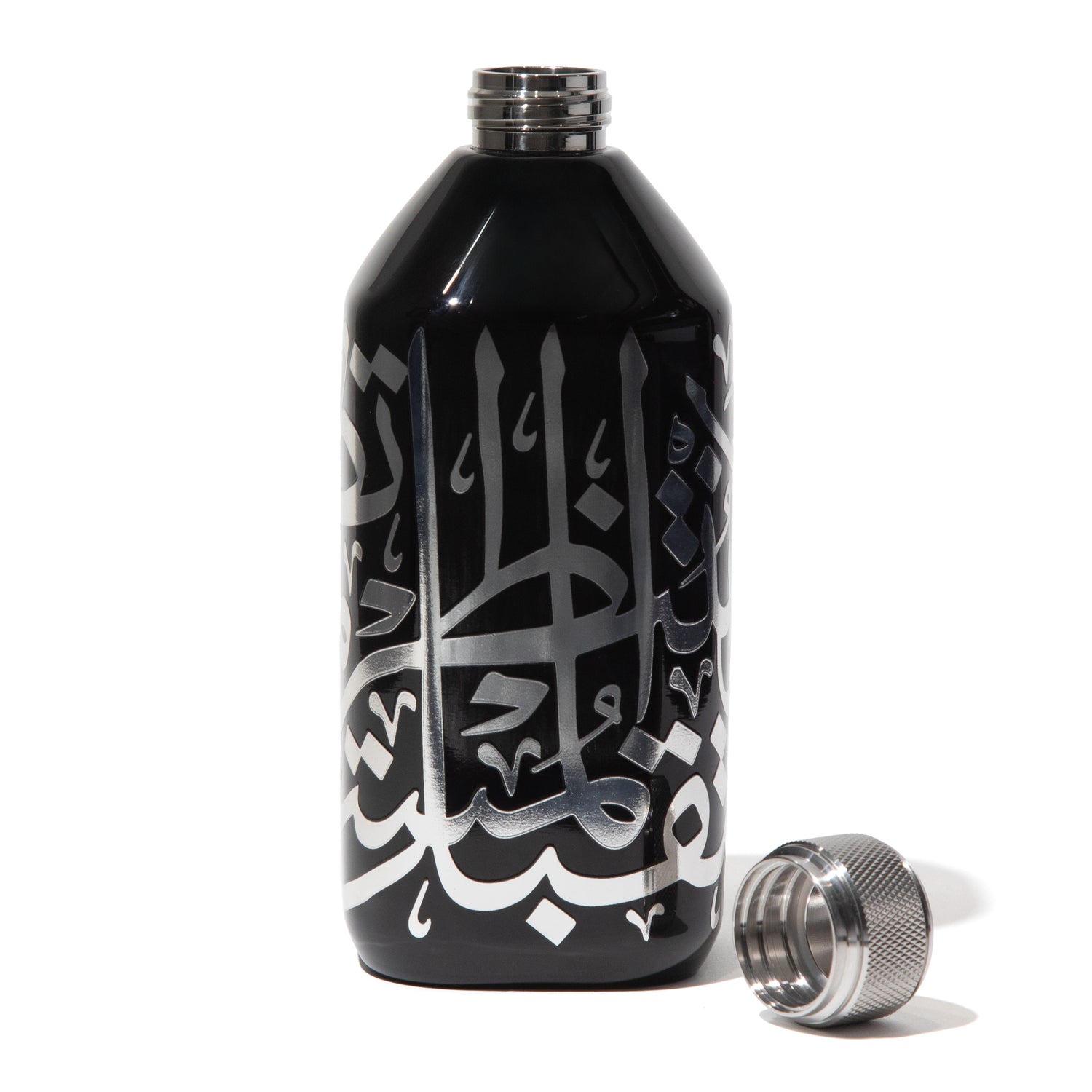 Bring a piece of the "most beautiful building on earth" home with you. This sleek, matte black bottle features the iconic silver Arabic calligraphy seen on the facade of Dubai’s Museum of the Future.